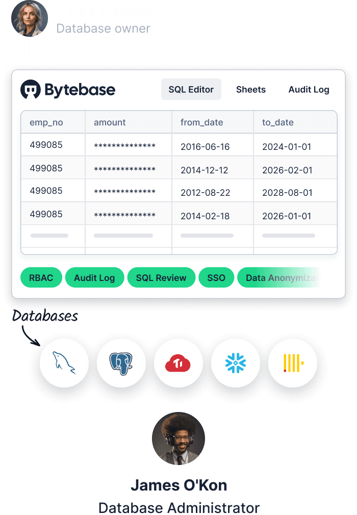 Just-in-Time (JIT) IAM-based database permissions with approval flow and audit logging.